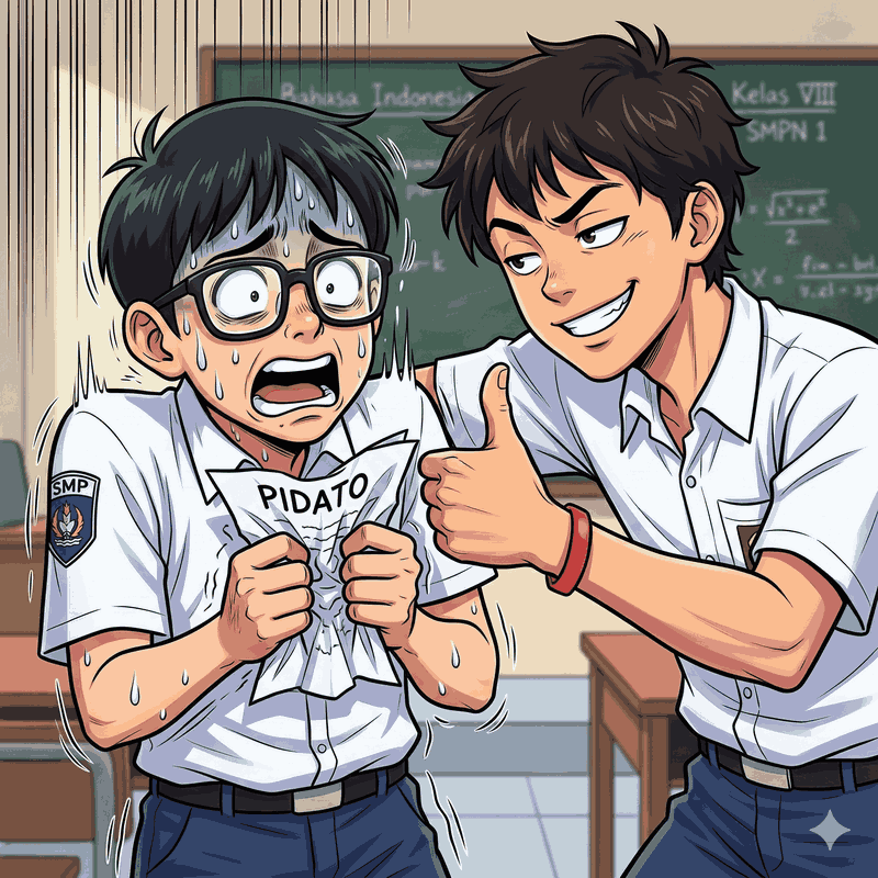 Pernah membayangkan menemukan "Buku Catatan Rahasia" milik guru paling galak di sekolah? Atau harus merelakan barang kesayanganmu demi membantu teman? Selamat datang di petualangan seru masa SMP! Masa Sekolah Menengah Pertama (SMP) itu penuh warna dan cerita. Kenalan yuk dengan empat sahabat ini: Rian yang selalu tenang, Dodi yang heboh dan suka gengsi, Bimo si kutu buku yang gampang panik, dan Sita si penegak aturan yang disiplin. Bagi mereka berempat, hari-hari di sekolah tidak pernah membosankan. Setiap harinya selalu ada tantangan baru! Mulai dari ketegangan saat tanpa sengaja menemukan buku catatan penting milik Pak Broto yang terkenal sangat tegas, hingga kebingungan Dodi saat harus membuat pilihan sulit. Ia harus memilih antara menjaga kotak pensil 48 warna hasil tabungannya sendiri, atau meminjamkannya kepada Dani, teman sekelasnya yang kebingungan karena tidak punya alat warna untuk tugasnya. Ini bukan sekadar cerita tentang mengejar nilai bagus di rapor. Ini adalah kisah yang seru, lucu, dan penuh makna tentang belajar jujur, berani berbuat baik, dan menyadari bahwa sahabat sejati akan selalu menolongmu—bahkan saat kamu kehabisan alat tulis di tengah pelajaran! Yuk, ikuti keseruan dan canda tawa persahabatan mereka di sekolah!